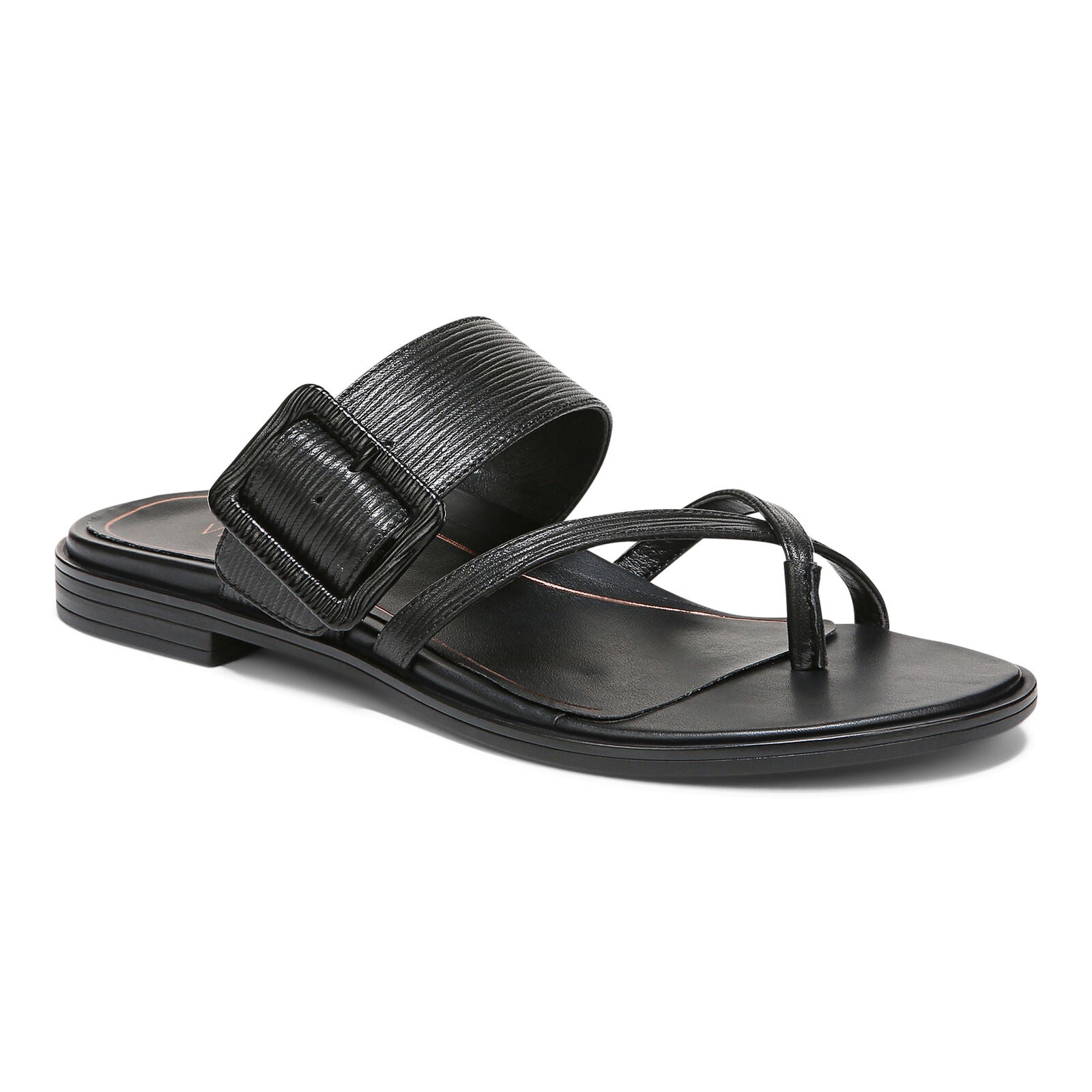 Textured Leather Combines With A Stylish (And Adjustable!) Chunky Buckle And Criss-Cross Toe Strap For A Polished, Luxe Look.